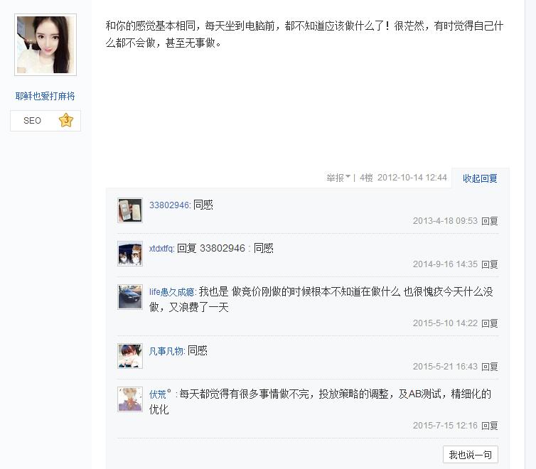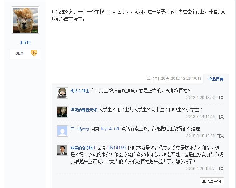 最近小魏在搜索关于竞价推广的关键词的时候,发现贴吧一个比较搞笑的互动留言评论,这里面主要是说明了大家对于从事多年的医疗行业的一个困惑,也就是说,很多人在医疗行业做了很长时间,感觉到很迷茫。
