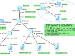 上网实战案例 用户需求: 1.R1为连接企业网和运营商设备,R2为运营商网 2.把相应的pc划分到相应的vlan中 3.pc能够访问某度服务器 涉及技术:vlan 静态路由 acl nat 终端pc:对应的ip 掩码 网关如下 pc1:192.168.1.10 /24 192....